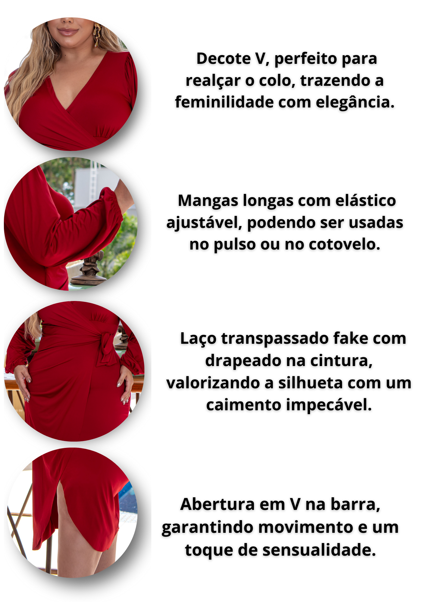 O modelo realça as curvas com discrição e estilo, proporcionando um visual moderno e sofisticado.